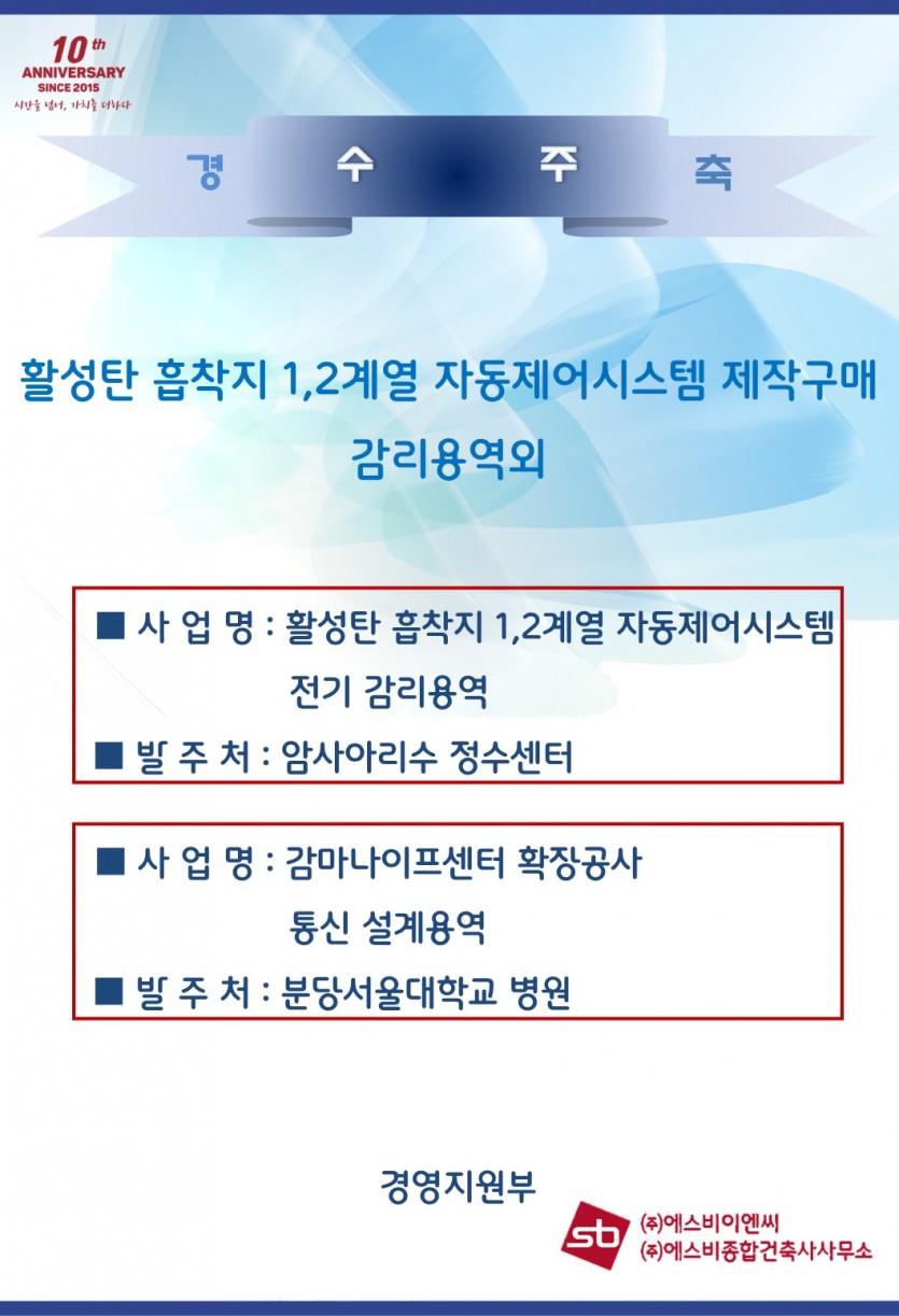 [수주소식]활성탄 흡착지 1,2계열 자동제어시스템 제작구매 감리용역 작성일25-11-29 첨부파일 활성탄 흡착지 1,2계열 자동제어시스템 제작구매 감리용역.JPG (204.9K) 본문 활성탄 흡착지 1,2계열 자동제어시스템 제작구매 감리용역 목록
